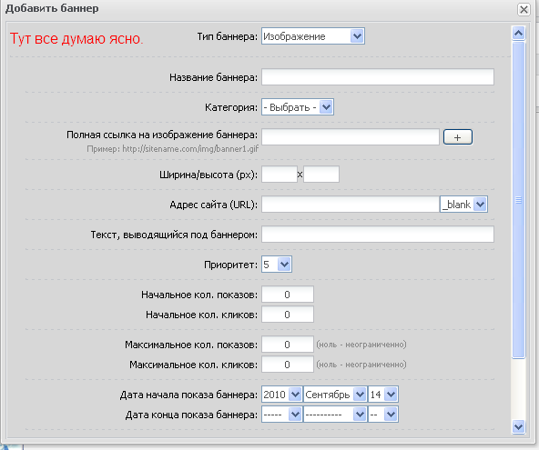 Создаешь баннер, кликаешь по созданному тобой ротатору, вылазит окошко: